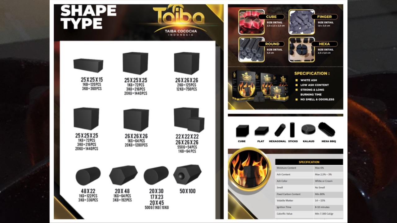 PT. Taiba Cococha Indonesia is a manufacturer of premium coconut shell charcoal for Hookah and BBQ. We manufacture and export premium coconut charcoal products to various markets around the world. We are committed to being an innovative company and actively operating in the international briquette industry serving the needs of partners and building the Indonesian economy.